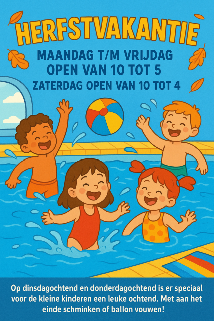 Tijdens de herfstvakantie ben je van harte welkom in ons zwembad voor een week vol waterpret!